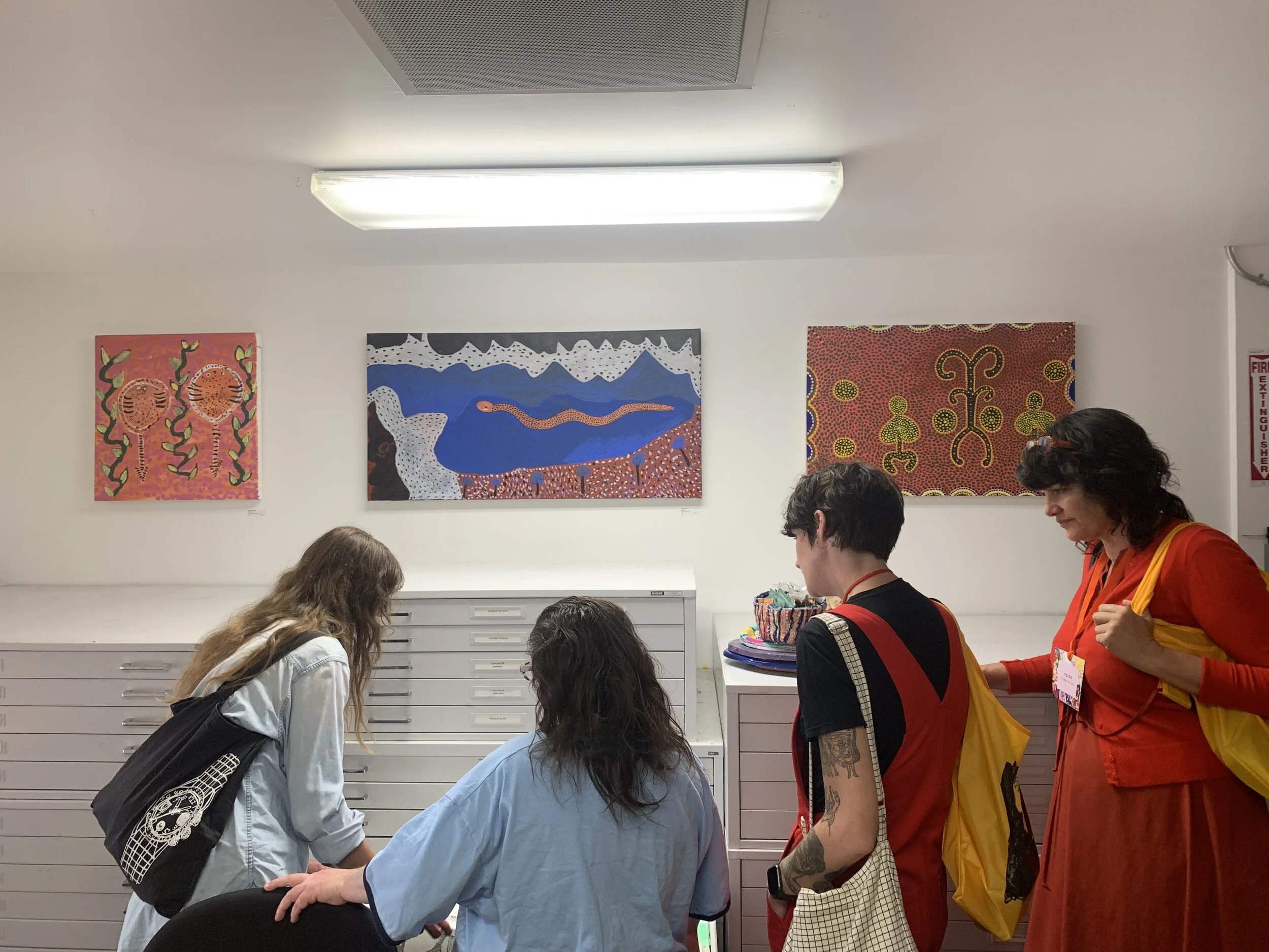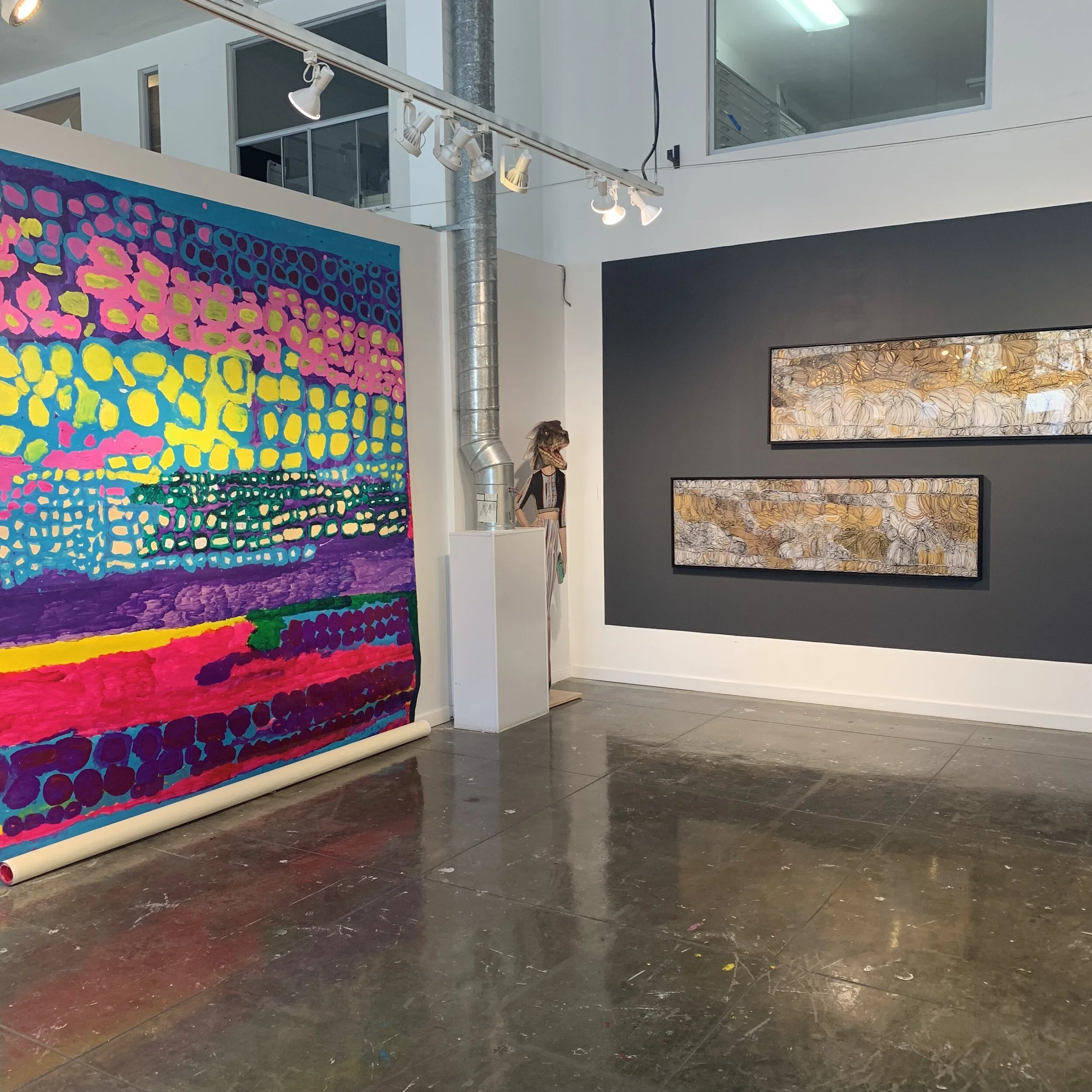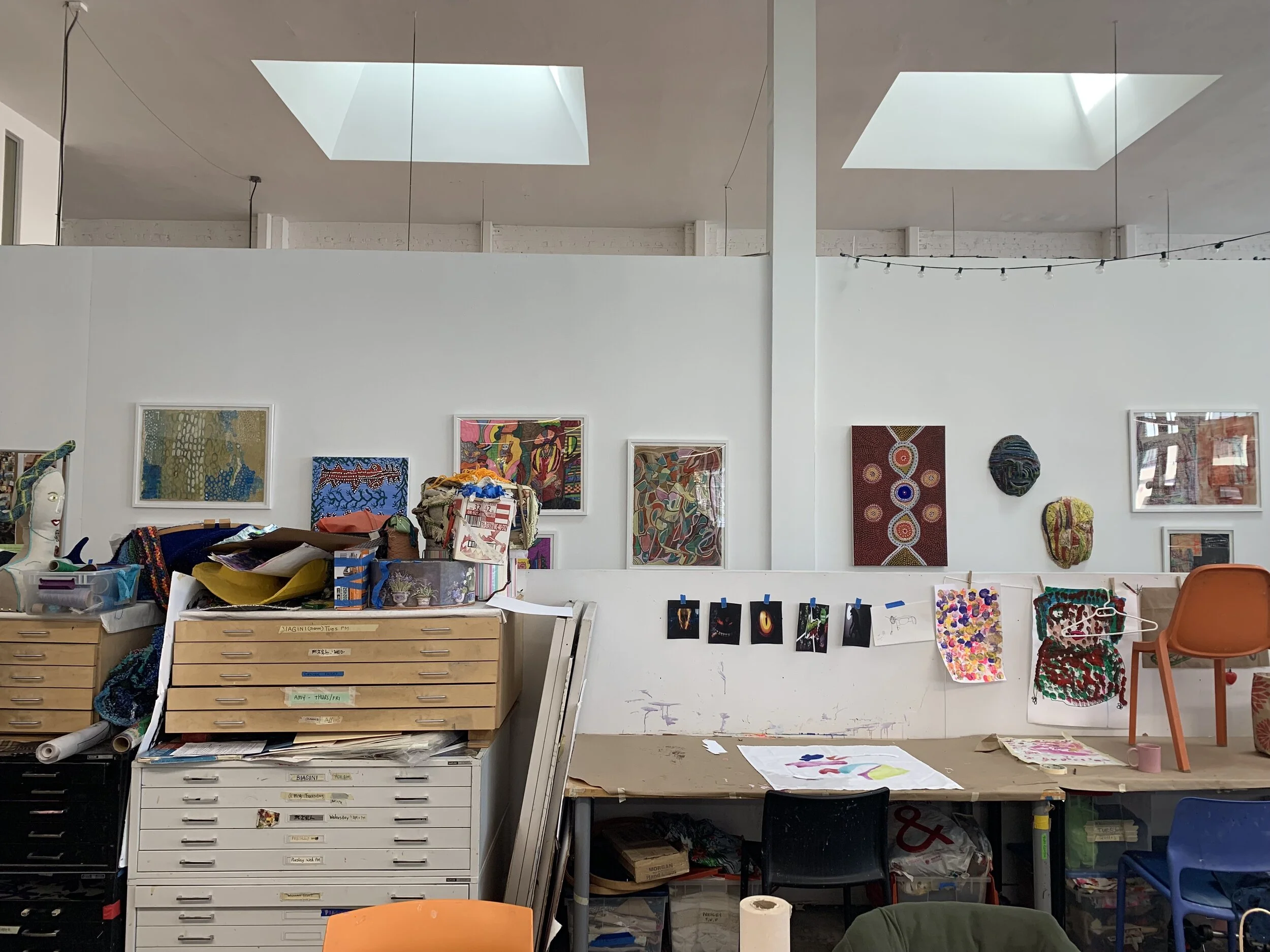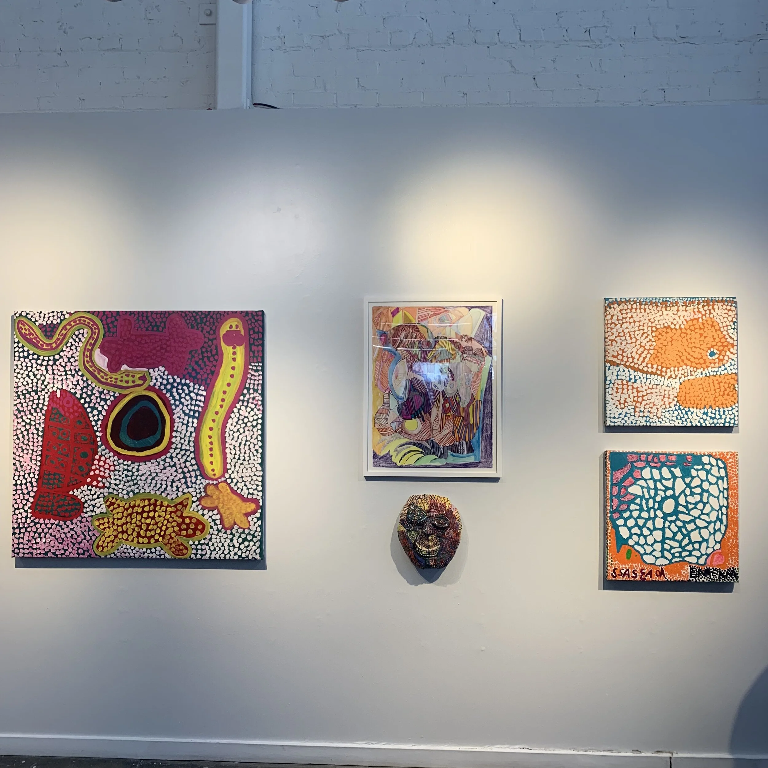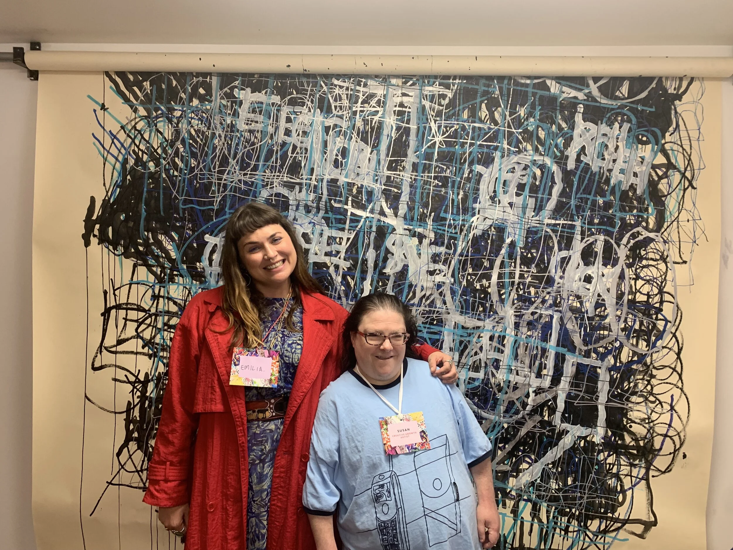 After completing an internship in 2016 at Creative Growth in Oakland, Tom di Maria and Emilia Galatis developed a relationship that resulted in two USA exhibition. Co–curatoring two shows entitled Meeting Places, they worked together to present and dissect the role of community arts in broader narratives. Inspired by the pure energy, community power and visual impact of each group of artists, and their often-marginalized role in the contemporary art world, the exhibition examines intersections of the work itself and the frequently striking stylistic similarities between makers from these two art communities.